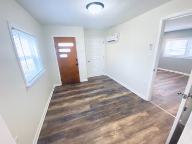 This 2 bedroom apartment has 2 full baths and is perfect for roommates or families that don't want to share a bathroom. Each bedroom has separate heat and AC to adjust as you'd like. Lots of windows, all with blinds provided. Washer/dryer hookups & new kitchen appliances.
